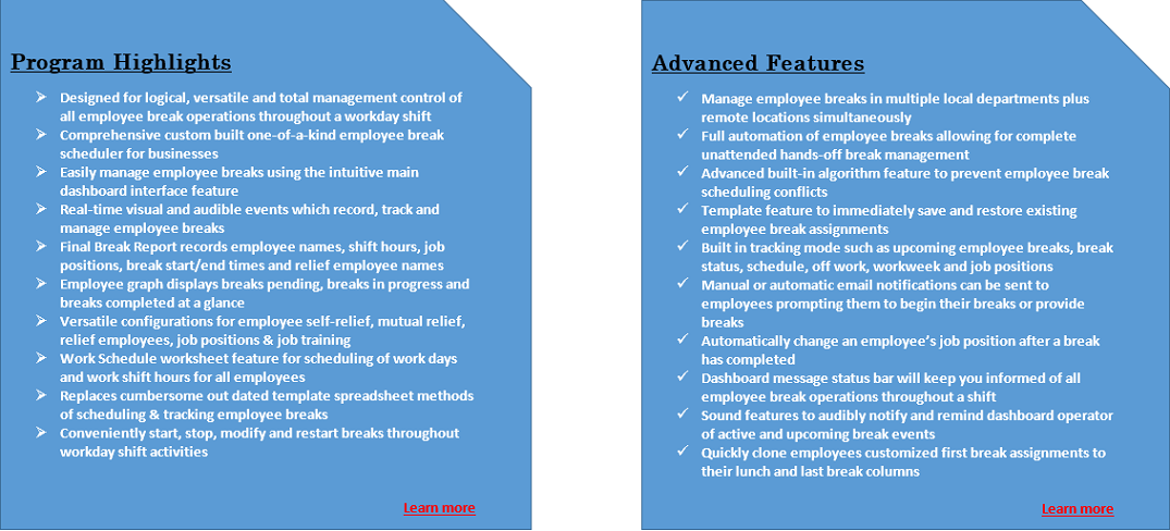 Give'em a Break software for Windows is specifically designed to support industry companies staffing many employees such as: