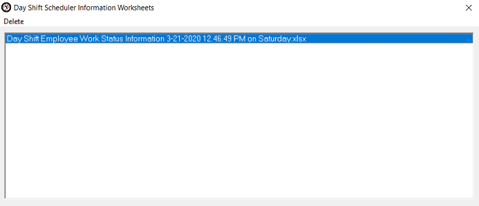 You can view, open (double click the desired entry) and delete existing worksheets at any time by clicking on the View Worksheets menu item. Here is a typical View Worksheets window. Please note: You must use the Export to Excel... feature first in order for a worksheet to be listed in this window.