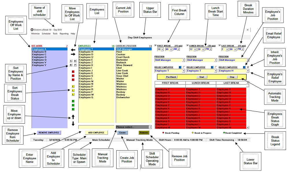 Main Dashboard Operation Exercises Shift Scheduler Break Configuration Examples |